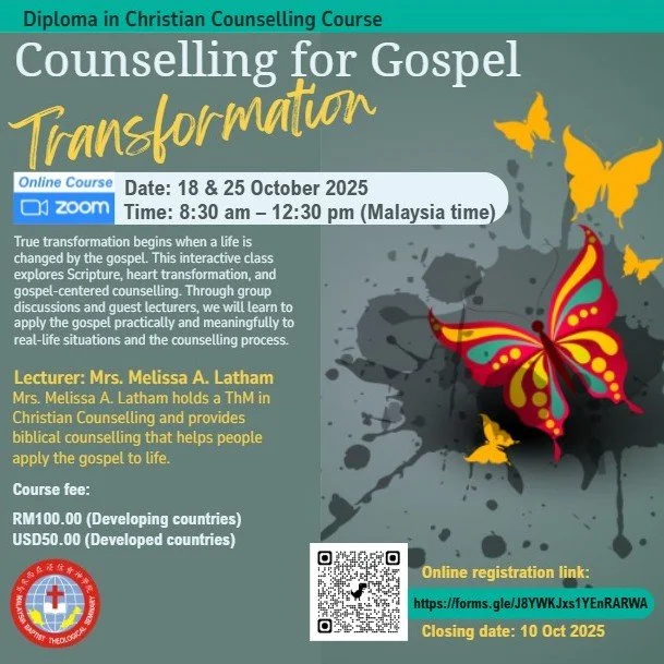 Diploma in Christian Counseling (24 credits; modular) is a systematic counseling program designed to meet the needs of working adults who want to upgrade their counseling skills and knowledge to assist them in their ministries.